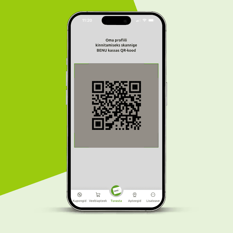 4. Tuvasta end apteekides kiiresti ja lihtsalt BENU Pluss äpis oleva QR-koodiga.