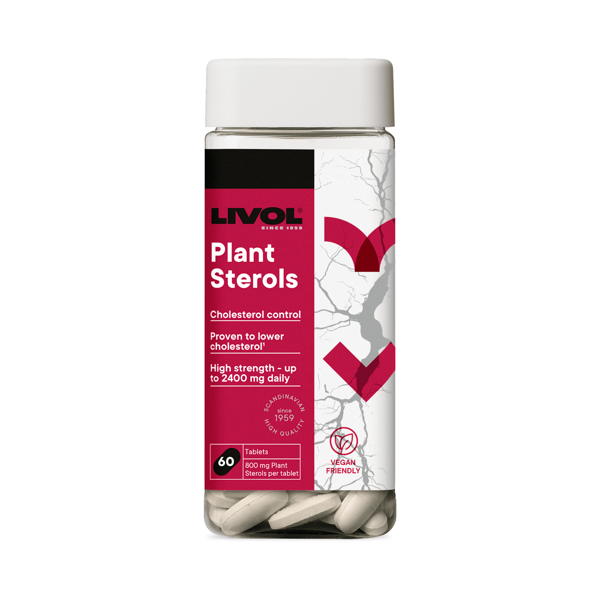 LIVOL Plant Sterols on Taani ekspertide poolt välja töötatud kõrgekvaliteediline taimsete steroolidega toode kolesterooli kontrollimiseks. Suur kogus taimesteroole – kuni 2400 mg / päevas. Toidulisand. Sisaldab taimesteroole. 60 tabl Taimsed steroolid (fütosteroolid) esinevad puuviljades, köögiviljades, teraviljades jm taimedes. Sisaldab tiamiini. Sobilik veganitele.