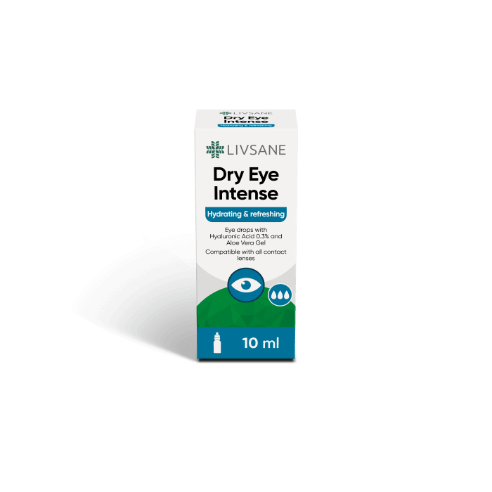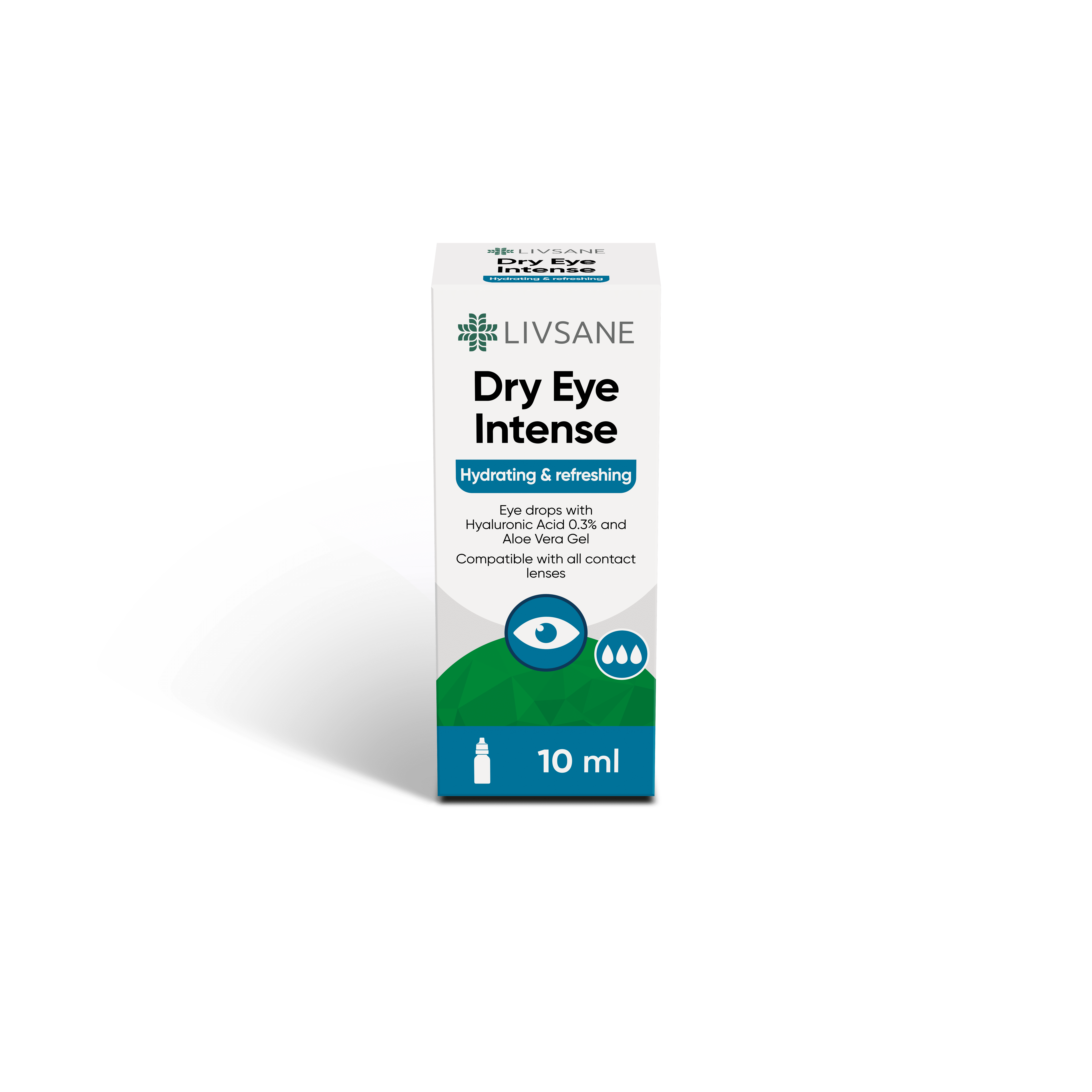 LIVSANE Dry Eye Intense silmatilgad on intensiivselt niisutav, libestav, värskendav, bioloogiliselt ühilduv oftalmoloogiline lahus, milles 0.3 % hüaluroonhape ja aloe vera geel.