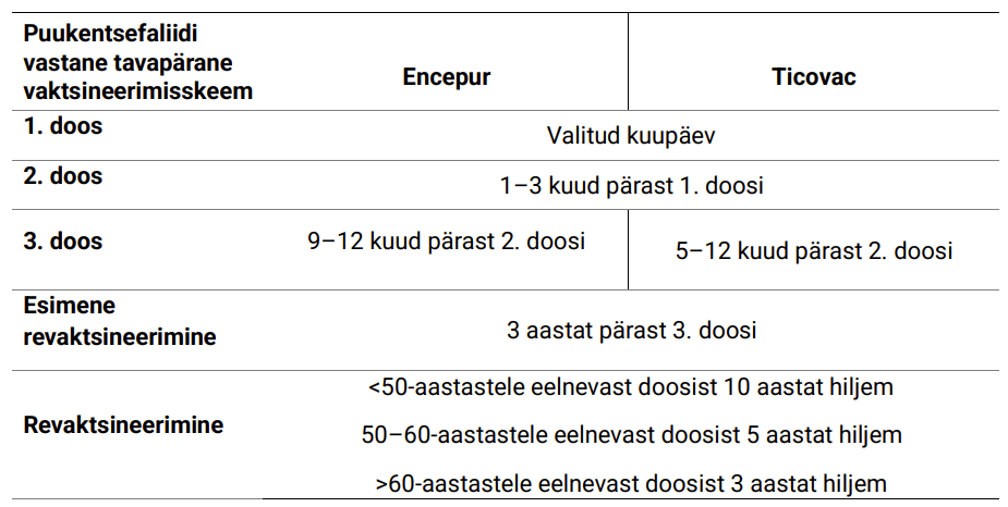 Vaktsineerimisskeem (Ticovac / Encepur)