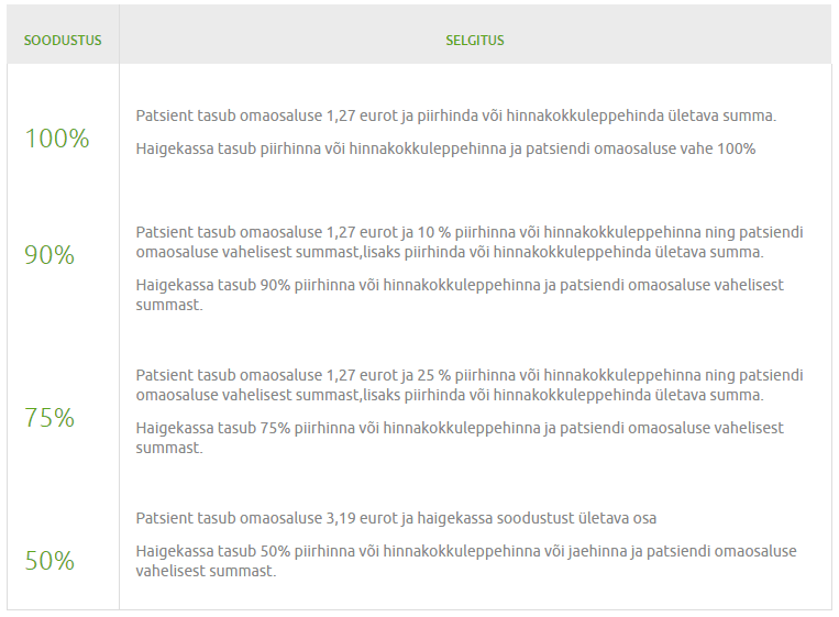 Ravimi soodustamisel võtab Eesti Haigekassa aluseks ravimi pakendile kehtestatud piirhinna ning kui patsiendile on välja kirjutatud või patsient soovib osta ravimit, mille tegelik hind on piirhinnast kõrgem, maksab pakendile kehtiva piirhinna ja selle tegeliku hinna vahe patsient.