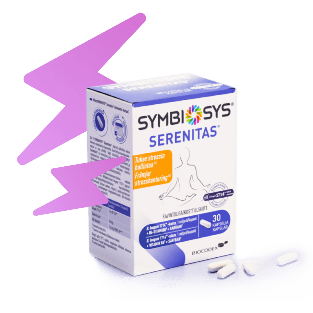 SYMBIOSYS Serenitas® on toidulisand, mis ei asenda tasakaalustatud ja mitmekesist toitumist ning tervislikku eluviisi. Mitte ületada päevaseks tarbimiseks soovitatavat kogust.