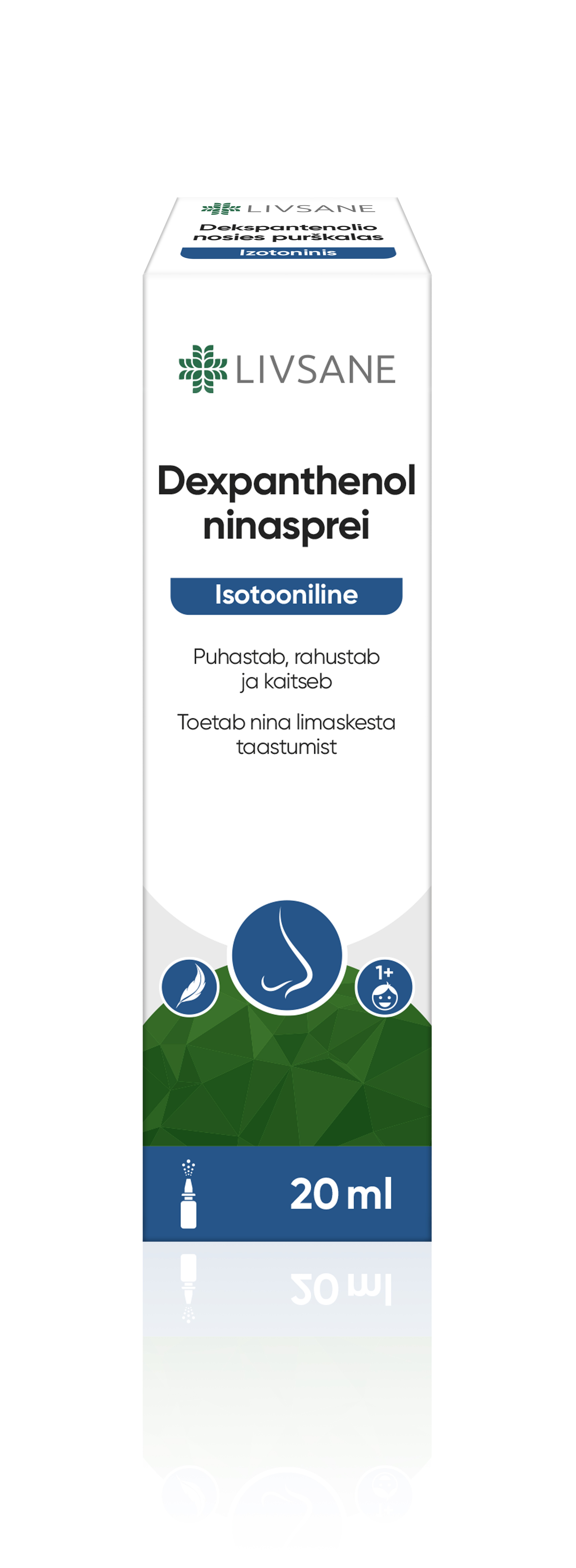 LIVSANE isotooniline 3% dekspantenooliga soolalahus on meditsiiniseade, mis niisutab ja puhastab nina limaskestasid. Kasutada täiskasvanutele ja lastele alates 6. eluaastast nina-neelu limaskestade infektsioonide, nohu ja limaskestade kuivuse korral. Mikroelementidega.
