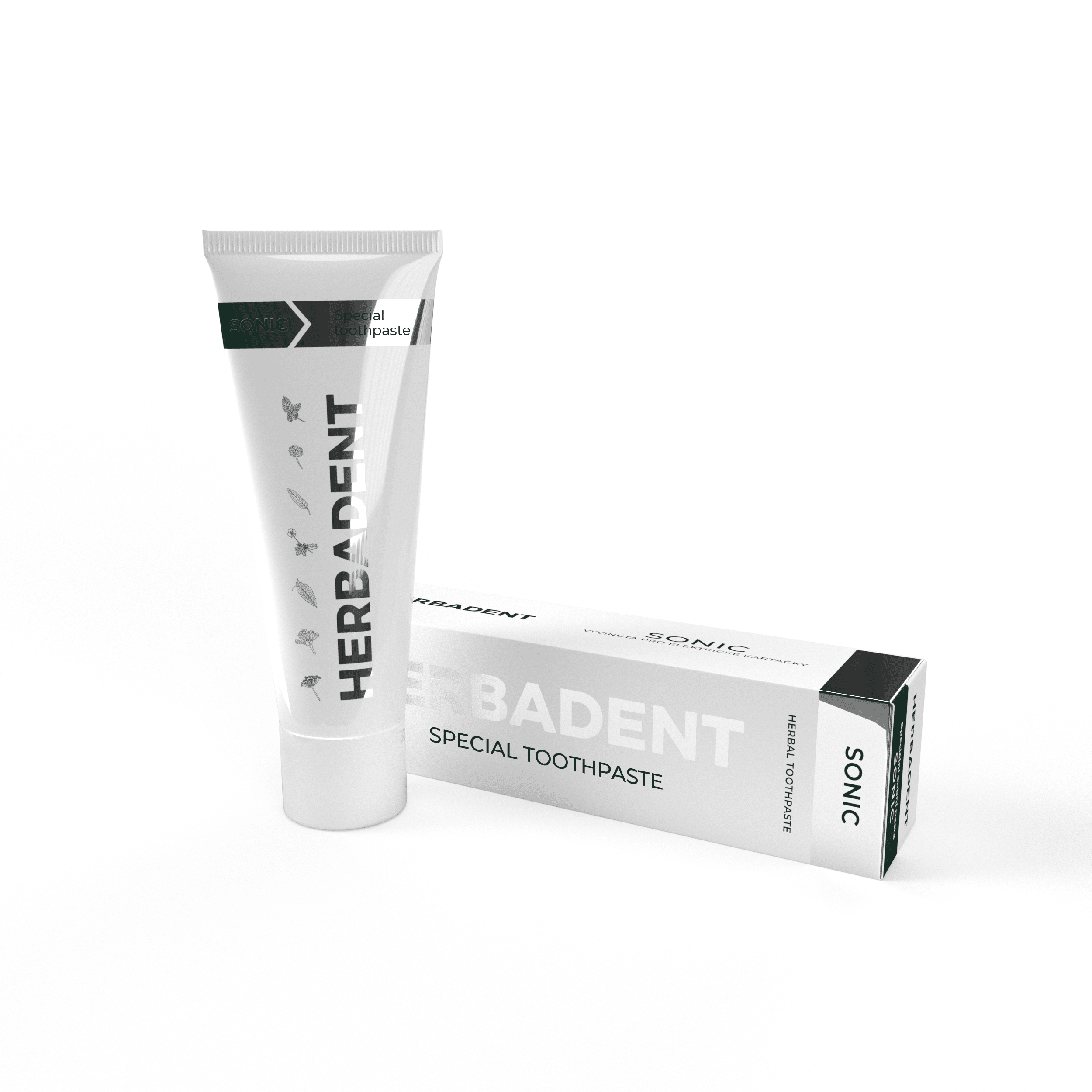 HERBADENT SONIC õrn taimne hambapasta, mis sobib kasutamiseks elektrilise hambaharjaga. Põhineb kliiniliselt testitud 7 ravimtaime ainulaadsel ekstraktil, mis kaitseb limaskesta. Madala abrasiivsusega geeljas hambapasta õrnaks puhastamiseks elektrilise hambaharjaga.