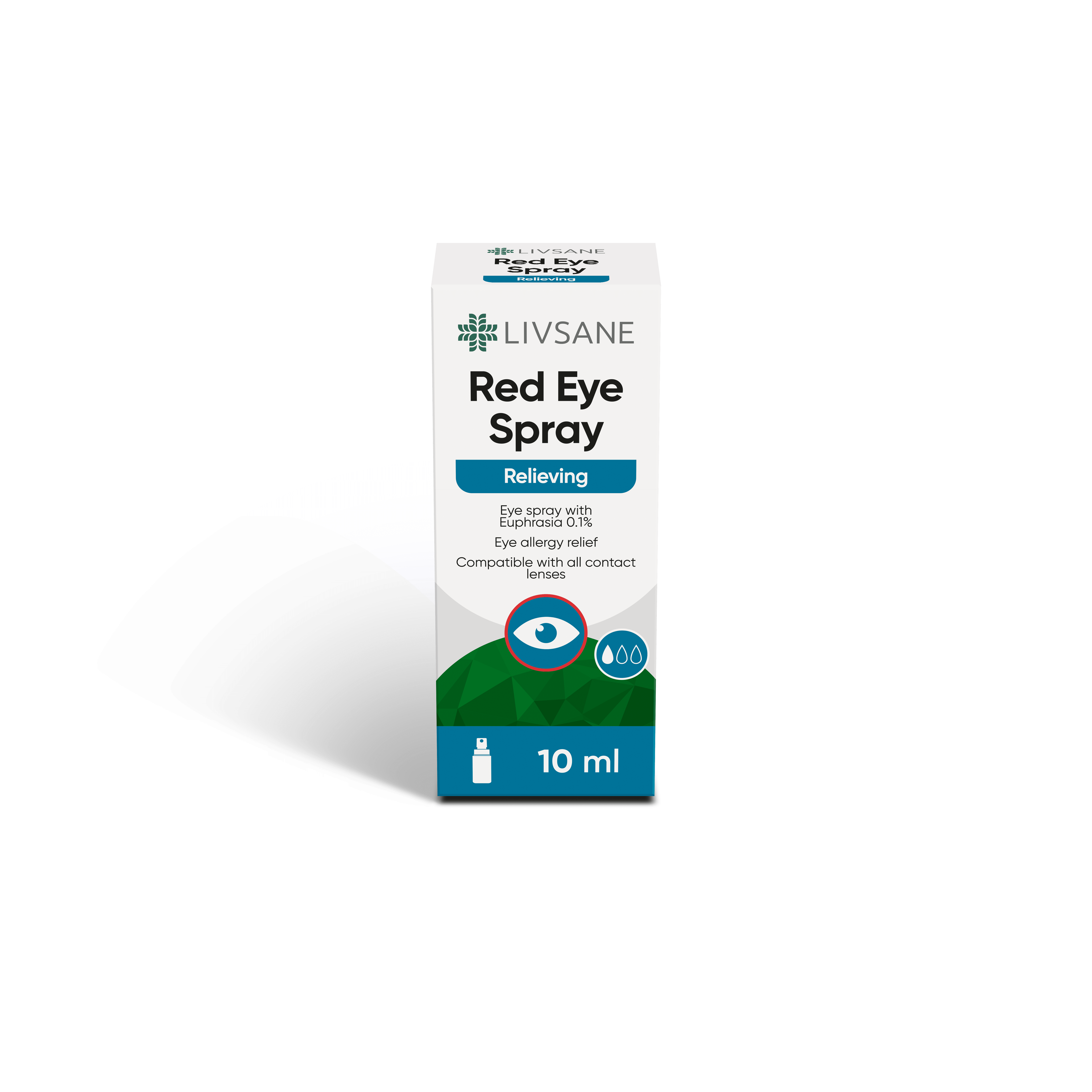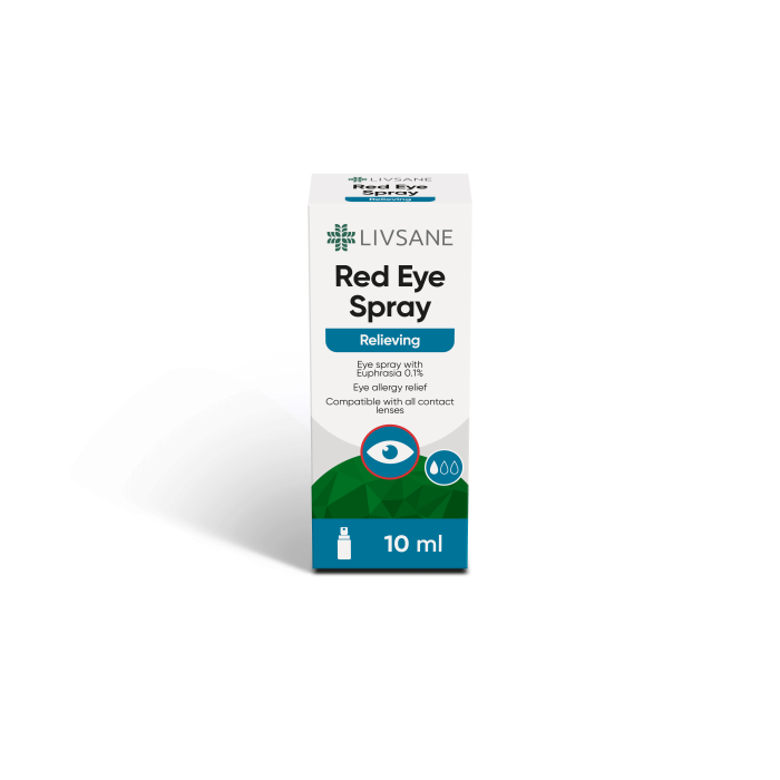 LIVSANE Red Eye silmasprei on niisutav, rahustav, libestav, värskendav, bioloogiliselt ühilduv oftalmoloogiline lahus, mis sisaldab 0.1% harilikku silmarohtu ehk Euphrasiat (Euphrasia officinalis). See aitab pakkuda leevendust allergiatest põhjustatud punastele ja ärritunud silmadele ning seda võib kanda avatud või suletud silmadele. Pihusti on steriilne ja seda saab kasutada ka kontaktläätsedega.