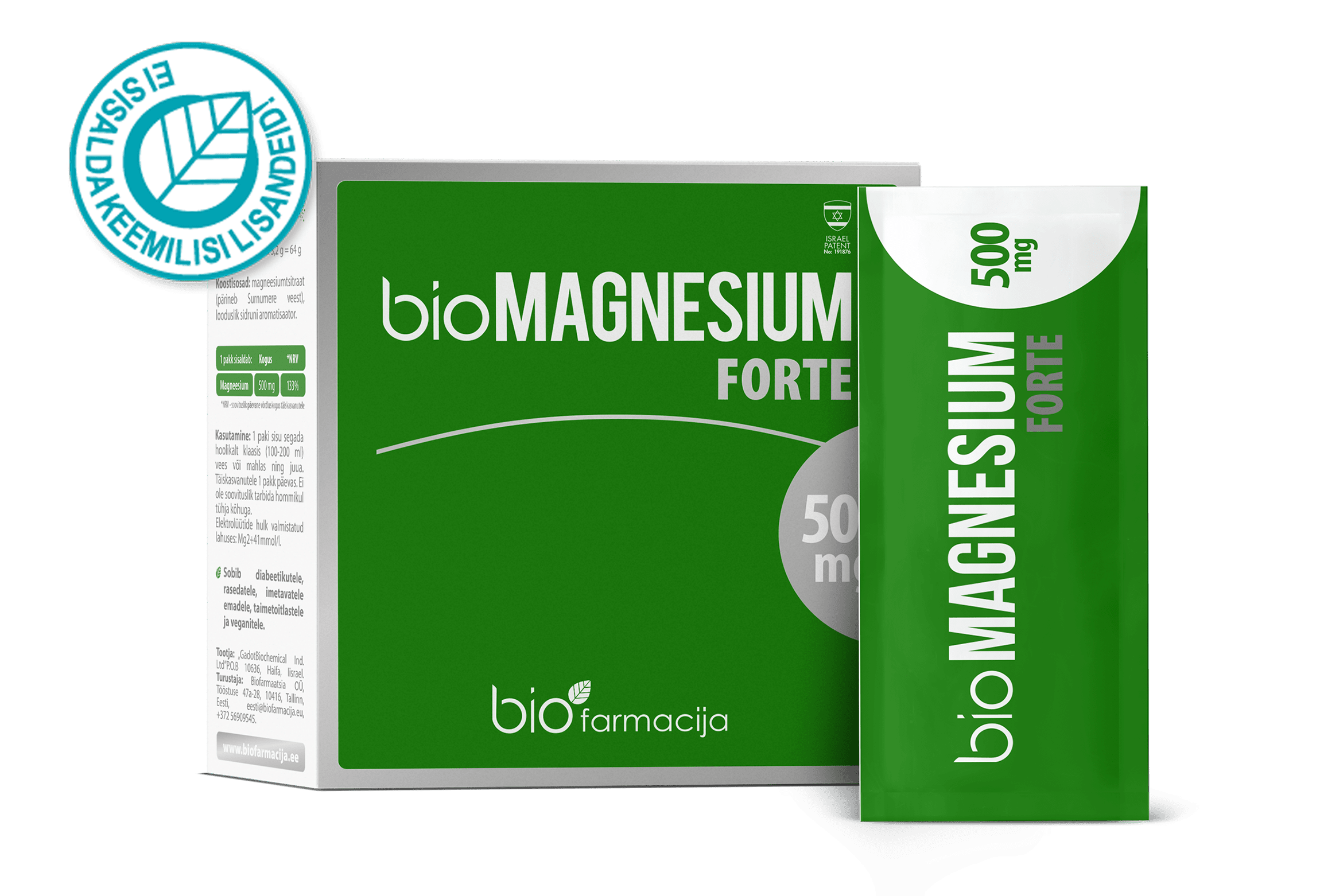 bioMagnesium Forte täiendab teie keha puhta, looduslikku päritolu magneesiumtsitraadiga. Sobib kogu perele! Sobib ka taimetoitlastele, veganitele ja diabeetikutele. Magneesium on vajalik närvisüsteemi ja lihaste normaalseks talitluseks. Magneesium aitab vähendada väsimust ja kurnatust. Magneesium aitab hoida luid ja hambaid normaalsetena. Magneesium on vajalik valkude, rasvade ja süsivesikute normaalseks ainevahetuseks. Magneesium aitab kaasa elektrolüütide tasakaalule ja energiavahetusele. Magneesium osaleb rakujagunemise protsessis. KEEMILISTE LISAAINETEVABA TOODE! Toidulisand ei sisalda kunstlikke magus-, värv-, maitse-ja säilitusaineid, stabilisaatoreid, paksendajaid ega emulgaatoreid. Eesliide “BIO” toote ja ettevõtte nimes viitab bioloogilisele omastamisele ja biokeemilisele olemusele ega ole seotud ökoloogilise tootmisega