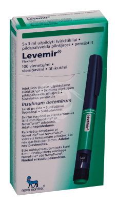LEVEMIR FLEXPEN SÜSTELAHUS PEN-SÜSTLIS 100ÜHIK 1ML 3ML N5