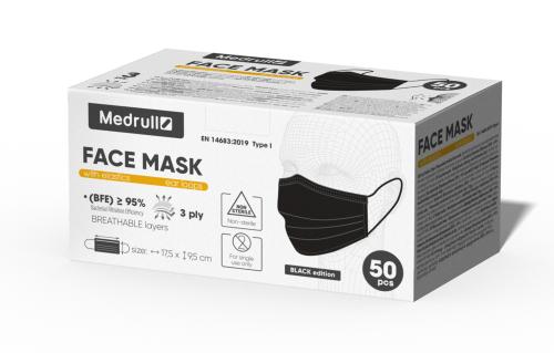 NÄOMASK MEDRULL ÜHEKORDNE 3-KIHILINE MUST N50